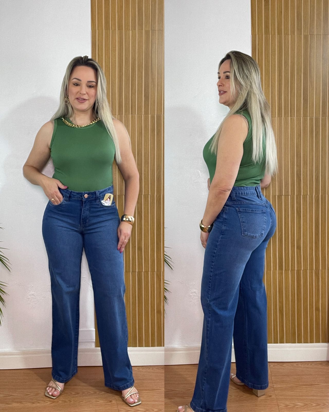 A modelagem é reta e ampla desde o quadril até a barra, trazendo conforto e elegância ao mesmo tempo. Ideal para usar com sandálias, tênis, salto ou até um look bem casual com t-shirt. Peça moderna, estilosa e perfeita para o dia a dia!
