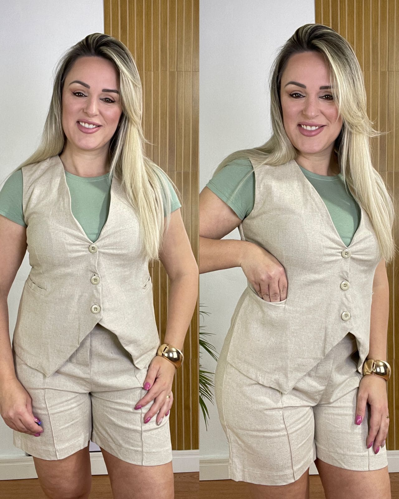 O nosso Colete em Linho é a peça ideal para compor looks elegantes, leves e modernos. Confeccionado em tecido linho misto, ele traz uma textura suave e sofisticada, com caimento perfeito para o dia a dia ou para produções mais arrumadas.