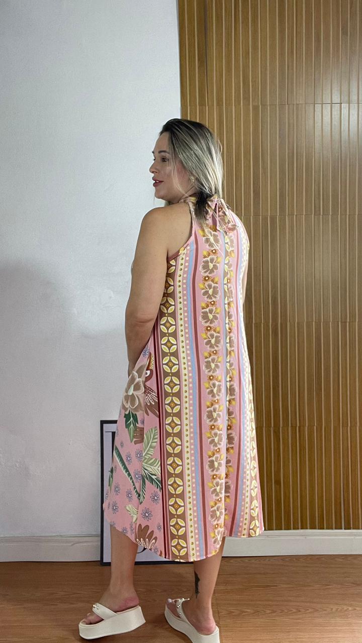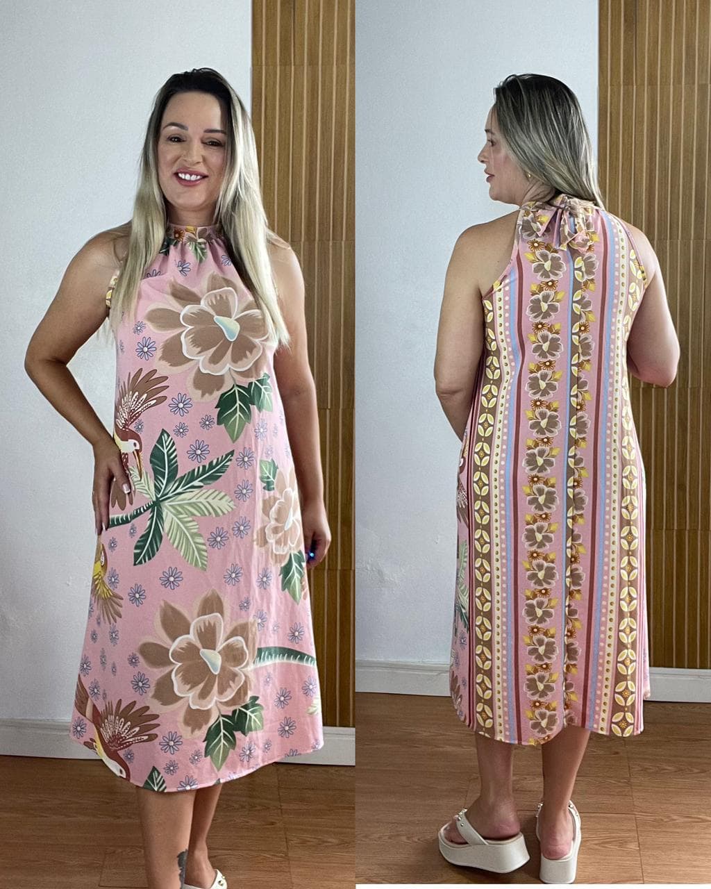 A estampa diferenciada combina elementos florais e listras, deixando a peça sofisticada e versátil para diversas ocasiões. Ideal para usar tanto no dia a dia quanto em momentos especiais, basta trocar os acessórios.